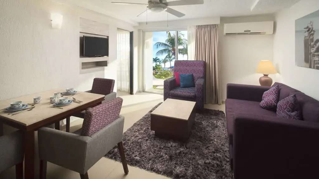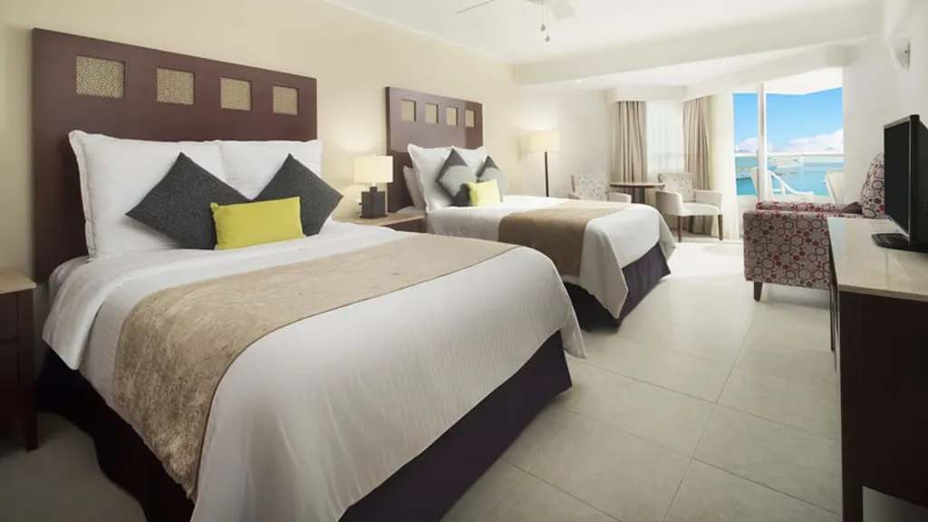 Located on the island paradise of Cozumel, El Cid La Ceiba Beach Hotel is the ideal vacation destination for families, friends and couples looking to unwind. There’s plenty for guests of all ages to explore both on and off the coast throughout the day. Relax by the pool overlooking the Caribbean Sea or watch as cruise ships come into port at one of the man-made beaches, including one with a charming waterfall and shallow tide pool. For a little more adventure, cruise along the coast on a jet ski or banana boat ride and explore a colourful coral reef just offshore by snorkel or scuba with the on-site dive center ($). Take a break from all the fun in the sun at the nearby El Cocay Massage Spa offering traditional Mayan massages and relaxing body treatments surrounded by a soothing ambiance with your choice of staying indoors and outdoors. When it’s time to grab a bite to eat, savour international dishes at the oceanfront La Chopa or enjoy a fresh brick-oven pizza with all your favourite toppings from Trattoria Di Salvatore. After a day of adventure or relaxation, retire to charming oceanview accommodations with convenient amenities like a mini-fridge, private balcony or patio, pillow menu and more. Upgrade your stay with Elite room categories offering enhanced amenities and services including a dedicated check-in and check-out area, butler service and an in-room fruit basket and bottle of wine upon arrival.