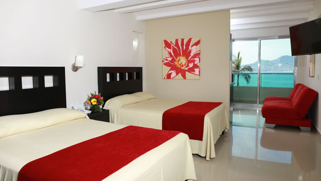 Set on a beautiful stretch of beach along Mexico’s Pacific Coast, Las Flores Beach Resort provides a laidback atmosphere and comfortable accommodations in the heart of the Golden Zone. Start your day soaking up the sun on the golden-sand shores or treat yourself to a relaxing beachside massage while kids have a blast at the pool with a charming waterfall and kids section. When it’s time to grab a bite to eat, enjoy local specialties and international favourites at the resort’s beachfront restaurant offering sweeping views of the coast. After a day of fun in the sun, dance to live music at the resort bar before retiring to comfortable accommodations including spacious suite options with kitchenettes.