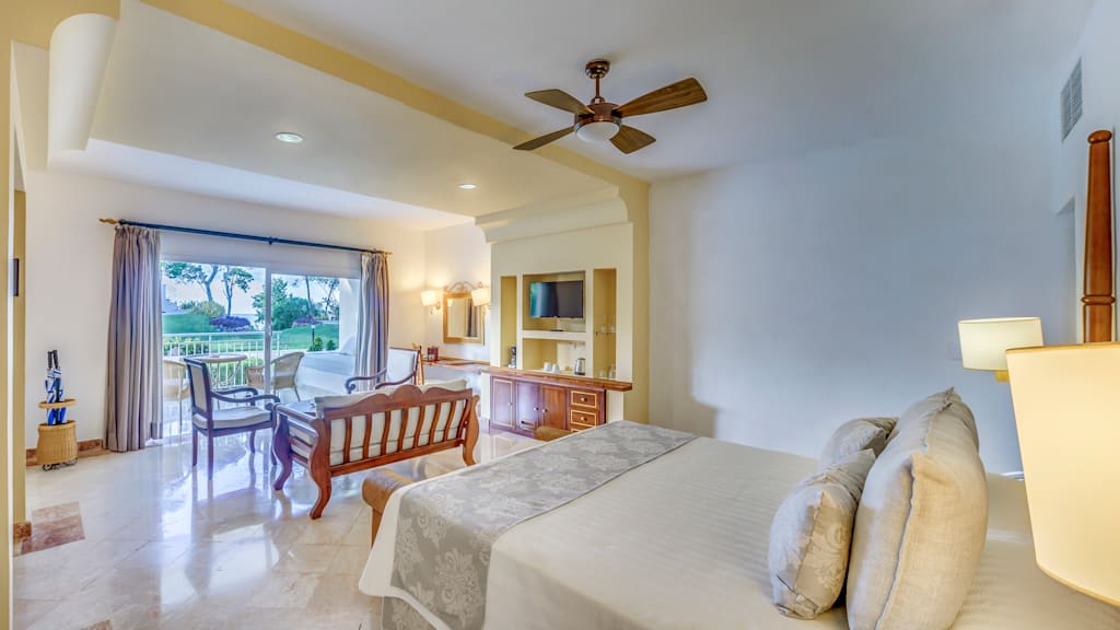 Donnant sur la côte étincelante de la Playa Esmeralda de Holguín, le Paradisus Riu de Oro Resort and Spa pour adultes est la destination parfaite pour les couples, les nouveaux mariés et les vacanciers en quête de détente. Sentez vos soucis s’évaporer en vous prélassant à côté de l’une des nombreuses piscines, ou faites-vous dorloter au spa YHI avec un soin du visage, un massage de couple ou une manucure, entre autres. Rendez-vous à la plage immaculée pour faire une sieste sur une chaise longue confortable, ou de la plongée avec tuba dans un récif corallien coloré tout juste au large, avec l’équipement offert gratuitement à tous les clients de l’hôtel. À la fin de la journée, retournez dans vos magnifiques suites junior dotées de balcons et de terrasses privés. Optez pour un surclassement au Royal Service pour profiter d’un service de majordome, de réservations préférentielles aux restaurants de l’hôtel, et d’une conciergerie à la plage et à la piscine, entre autres commodités exclusives.
