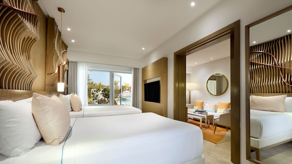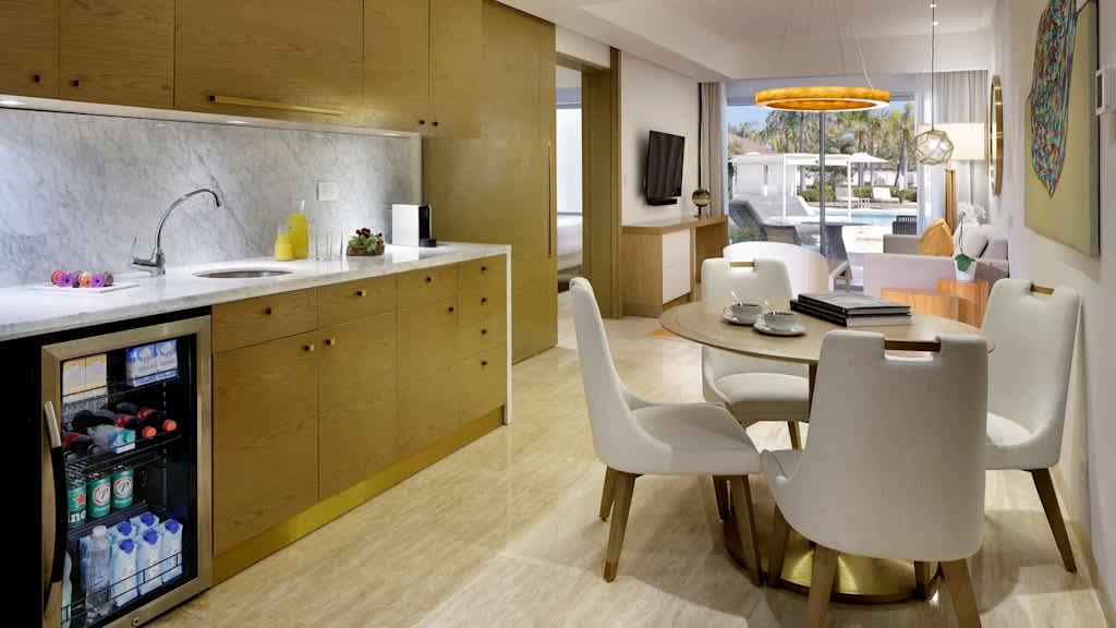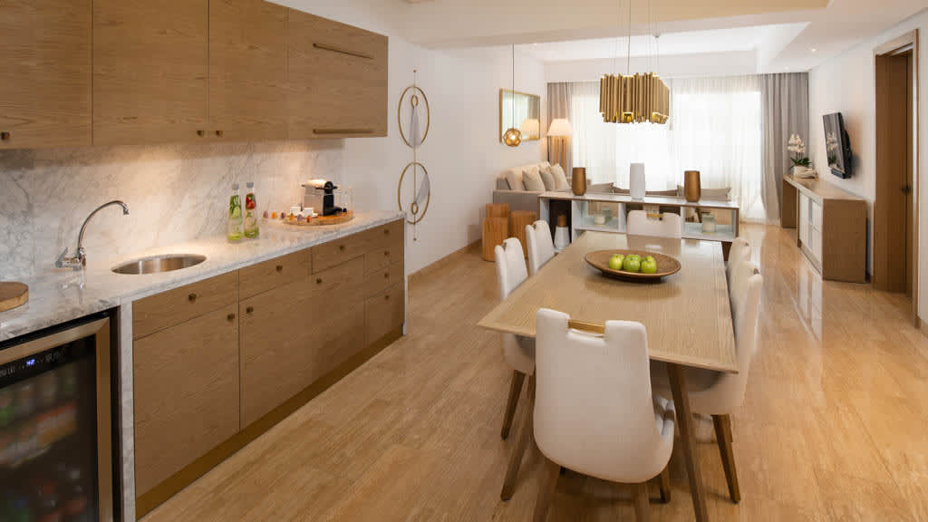 Situé dans la belle région de Punta Cana, le Paradisus Grand Cana All Suites offre une atmosphère sophistiquée et des commodités familiales. Profitez d’un séjour luxueux sous les tropiques dans cet hôtel moderne proposant du repos et de la relaxation ainsi que des expériences respectueuses de l’environnement. Les familles voyageant avec des enfants n’auront pas le temps de s’ennuyer dans cet hôtel incroyable. Les petits pourront se faire de nouveaux amis au miniclub, s’amuser au parc aquatique Blast! Aqua Fun à proximité (pour les enfants de dix ans et moins) ou suivre un amusant cours de danse pour enfants. Pendant ce temps, les parents peuvent se prélasser au soleil au bord de l’une des piscines étincelantes de l’hôtel ou recevoir un soin revigorant au Maia Spa. Toute la famille peut profiter des activités proposées par l’hôtel, notamment des cours de confection de sushis, des dégustations de vins, des leçons de salsa et de bachata, des ateliers d’art dominicain et bien plus encore. Choisissez parmi une vaste gamme de restaurants proposant des menus pour tous les goûts - des favoris de la grilladerie au Karnika, des mets caribéens réinventés au Mangú, des repas de fruits de mer haut de gamme au Machu et bien plus! Après une journée paradisiaque, décompressez dans votre somptueuse chambre dotée de commodités haut de gamme, dont un minibar réapprovisionné tous les jours, un service aux chambres en tout temps, une douche à jets de massage et une terrasse ou un balcon privé.