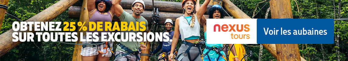 Offre de NexusTours : Réservez des vacances avant le 2 novembre et obtenez un crédit voyage de 25 %* de rabais pour des excursions avec NexusTours - vous sera envoyé par courriel d’ici le 3 novembre